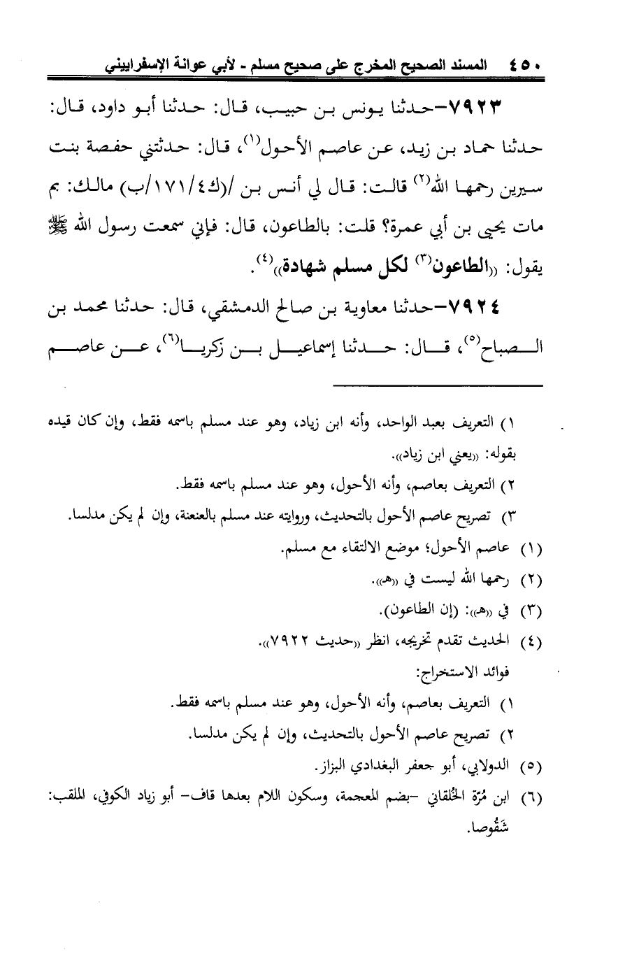 (¬1) عاصم الأحول؛ موضع الالتقاء مع مسلم.