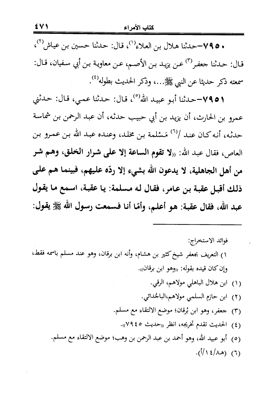 (¬3) جعفر، وهو ابن بُرقان؛ موضع الالتقاء مع مسلم.