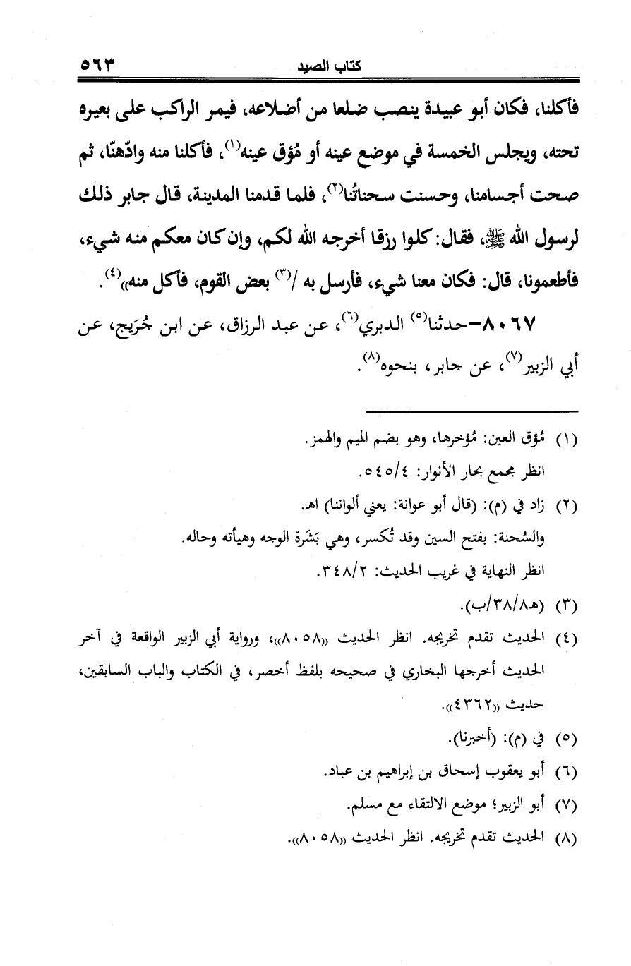 8067 - حدثنا (¬1) الدبري (¬2)، عن عبد الرزاق، عن ابن جُرَيج، عن أبي الزبير (¬3)، عن جابر، بنحوه (¬4).