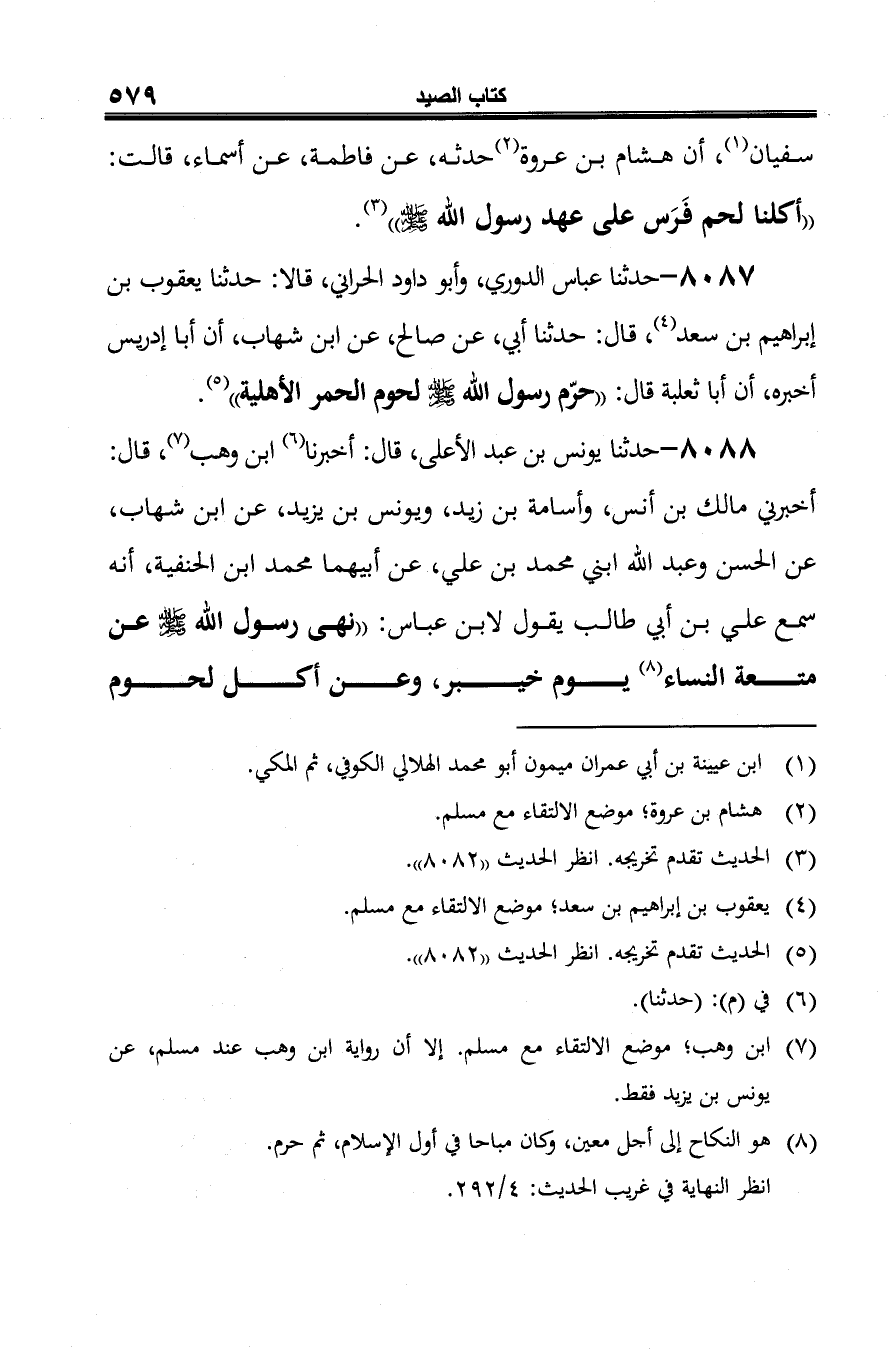 (¬5) الحديث أخرجه مسلم في صحيحه، كتاب النكاح، باب نكاح المتعة، وبيان أنه أبيح ثم نسخ، ثم أبيح، ثم نسخ، واستقر تحريمه إلى يوم القيامة: 2/ 1028، حديث "32"، وأخرجه كذلك في صحيحه، كتاب الذبائح والصيد، باب تحريم أكل لحم الحمر الإنسية: 3/ 1538، حديث "22".