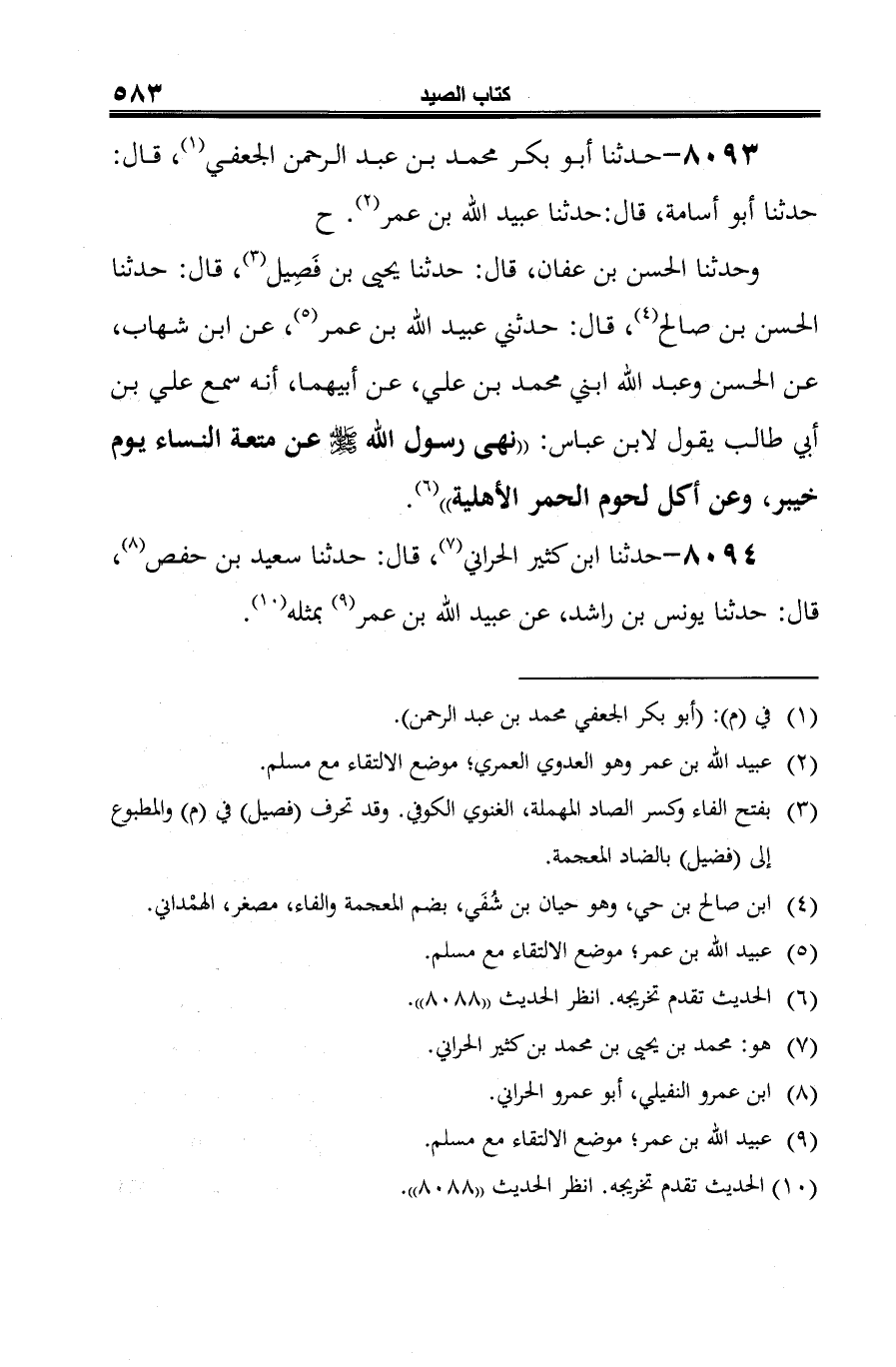 8093 - حدثنا أبو بكر محمد بن عبد الرحمن الجعفي (¬1)، قال: حدثنا أبو أسامة، قال: حدثنا عبيد الله بن عمر (¬2). ح