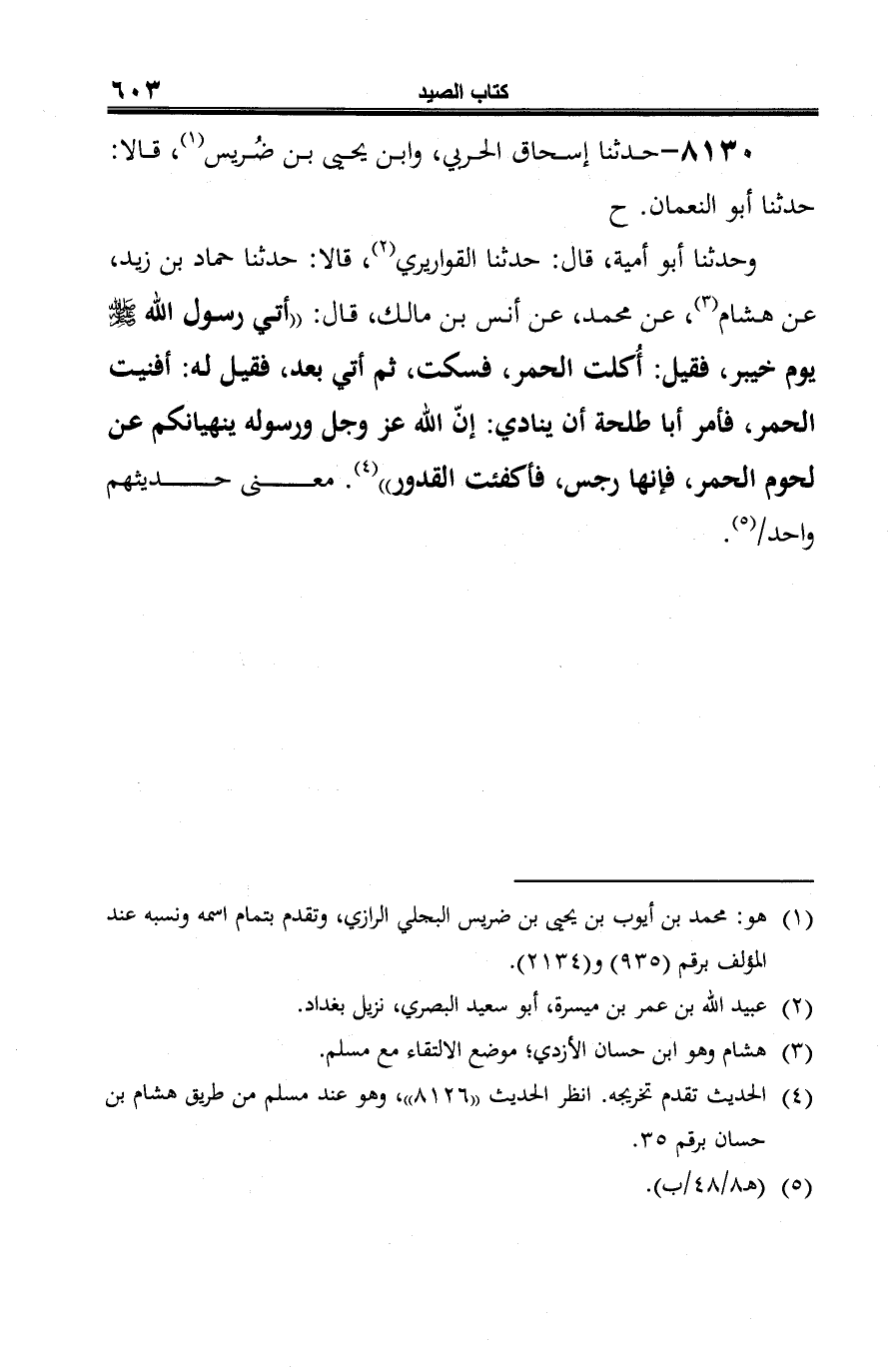 8130 - حدثنا إسحاق الحربي، وابن يحيى بن ضُريس (¬1)، قالا: حدثنا أبو النعمان. ح