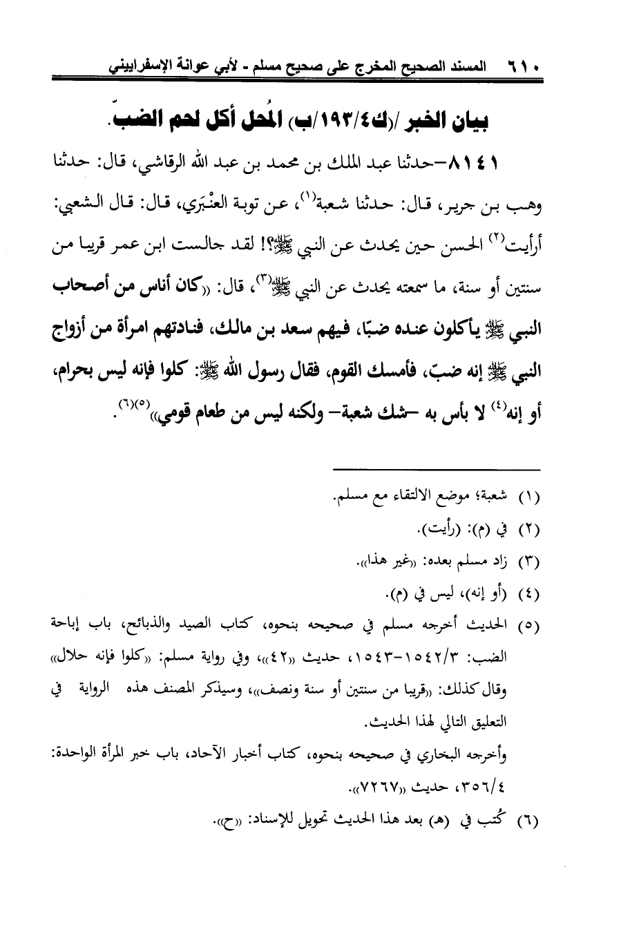 (¬5) الحديث أخرجه مسلم في صحيحه بنحوه، كتاب الصيد والذبائح، باب إباحة الضب: 3/ 1542 - 1543، حديث "42"، وفي رواية مسلم: "كلوا فإنه حلال" وقال كذلك: "قريبا من سنتين أو سنة ونصف"، وسيذكر المصنف هذه الرواية في التعليق التالي لهذا الحديث.