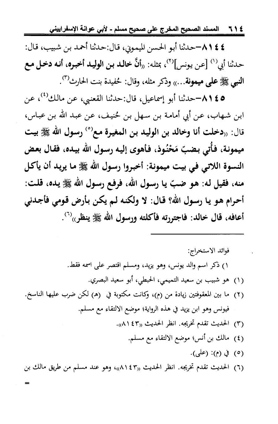 8144 - حدثنا أبو الحسن الميموني، قال: حدثنا أحمد بن شبيب، قال: حدثنا أبي (¬1) [عن يونس] (¬2)، بمثله: "أنَّ خالد بن الوليد أخبره، أن دخل مع النبي صلى الله عليه وسلم على ميمونة ... " وذكر مثله، وقال: حُفيدة بنت الحارث (¬3).
