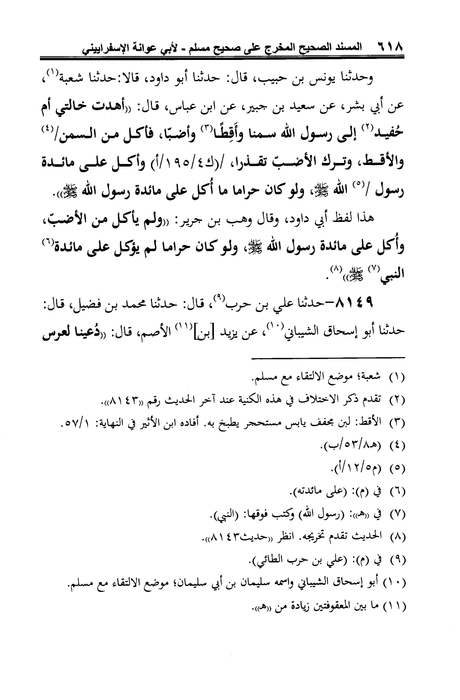 8149 - حدثنا علي بن حرب (¬1)، قال: حدثنا محمد بن فضيل، قال: حدثنا أبو إسحاق الشيباني (¬2)، عن يزيد [بن] (¬3) الأصم، قال: "دُعينا لعرس