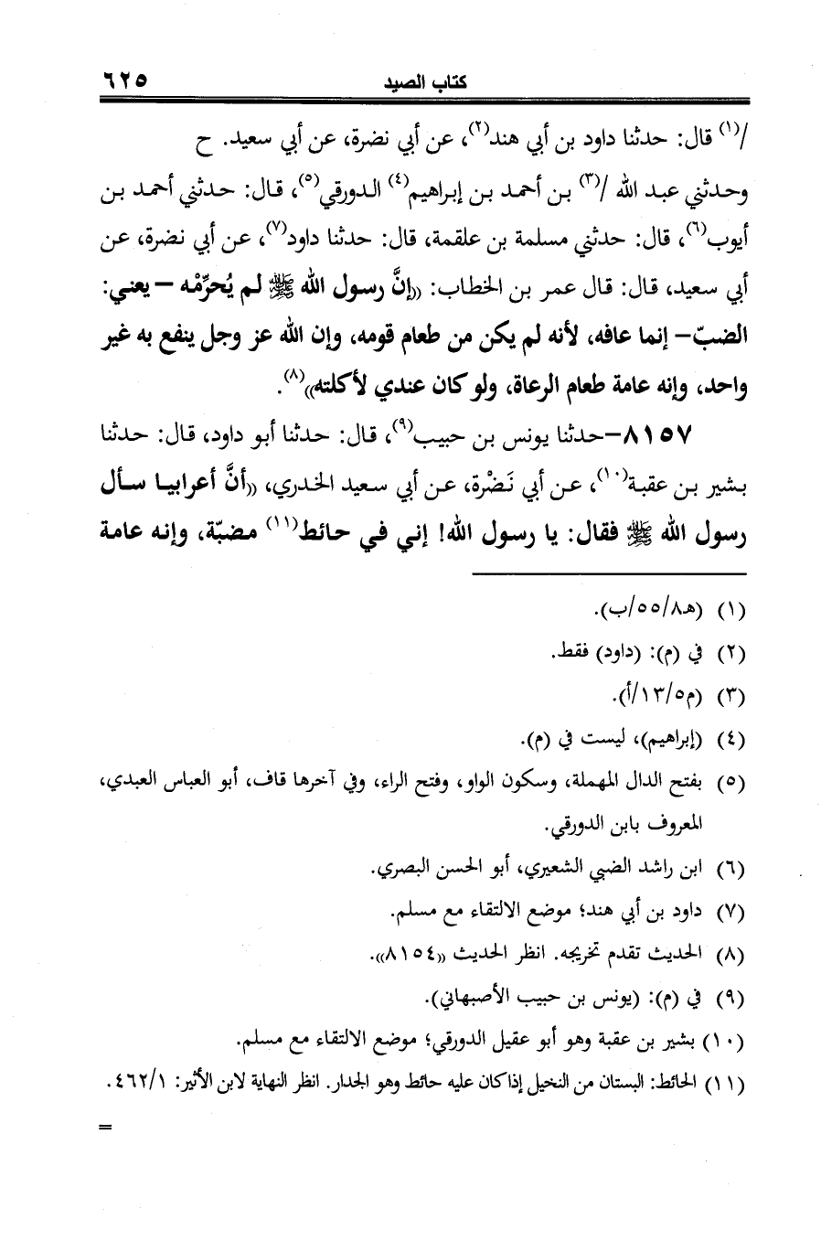 8157 - حدثنا يونس بن حبيب (¬1)، قال: حدثنا أبو داود، قال: حدثنا بشير بن عقبة (¬2)، عن أبي نَضْرة، عن أبي سعيد الخدري، "أنَّ أعرابي سأل رسول الله صلى الله عليه وسلم فقال: يا رسول الله! إني في حائط (¬3) مضبّة، وإنه عامة