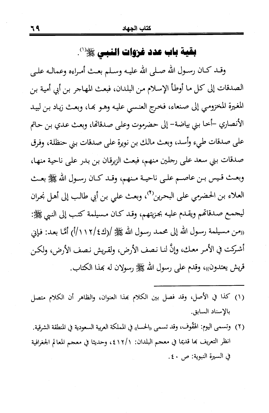 بقية باب عدد غزوات النبي -صلى الله عليه وسلم- (¬1).