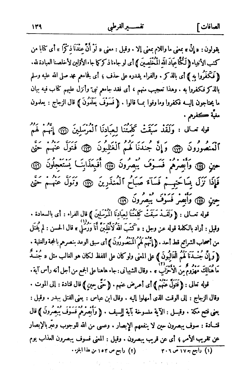 وَلَقَدْ سَبَقَتْ كَلِمَتُنا لِعِبادِنَا الْمُرْسَلِينَ (١٧١) إِنَّهُمْ لَهُمُ الْمَنْصُورُونَ (١٧٢) وَإِنَّ جُنْدَنا لَهُمُ الْغالِبُونَ (١٧٣) فَتَوَلَّ عَنْهُمْ حَتَّى حِينٍ (١٧٤) وَأَبْصِرْهُمْ فَسَوْفَ يُبْصِرُونَ (١٧٥)
