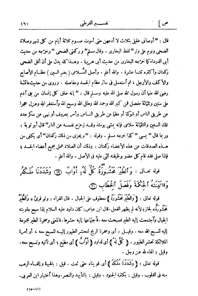 وَالطَّيْرَ مَحْشُورَةً كُلٌّ لَهُ أَوَّابٌ (١٩) وَشَدَدْنا مُلْكَهُ وَآتَيْناهُ الْحِكْمَةَ وَفَصْلَ الْخِطابِ (٢٠)
