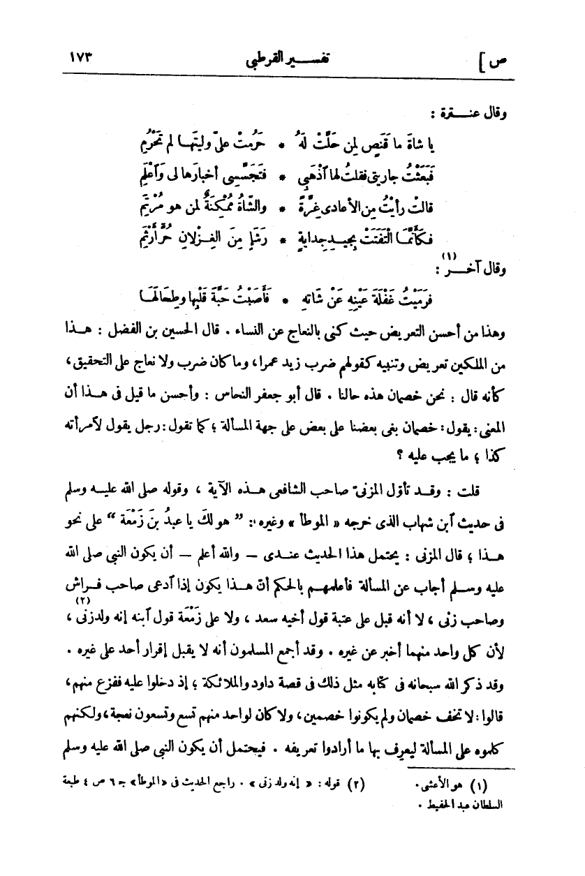 (٢). قوله:" إنه وتلد زنى" أولى بقول سعد بن أبى وقاص. راجع الحديث في" الموطأ" ج ٦ ص ٤ طبعه السلطان عبد الحفيظ.