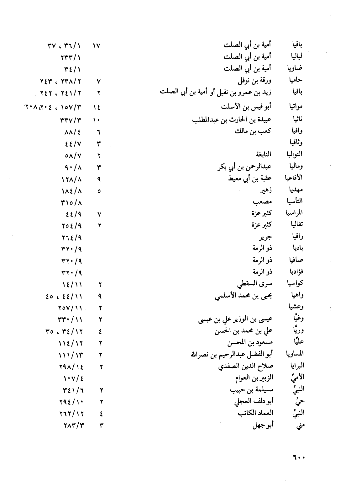 مقسم مولى ابن عباس (أبو القاسم) : ج 3/ 180، 269، 281، 301، 326. ج 4/ 30، 40، 107، 216، 242، 303، 347، 362. ج 5/ 45، 152، 169،