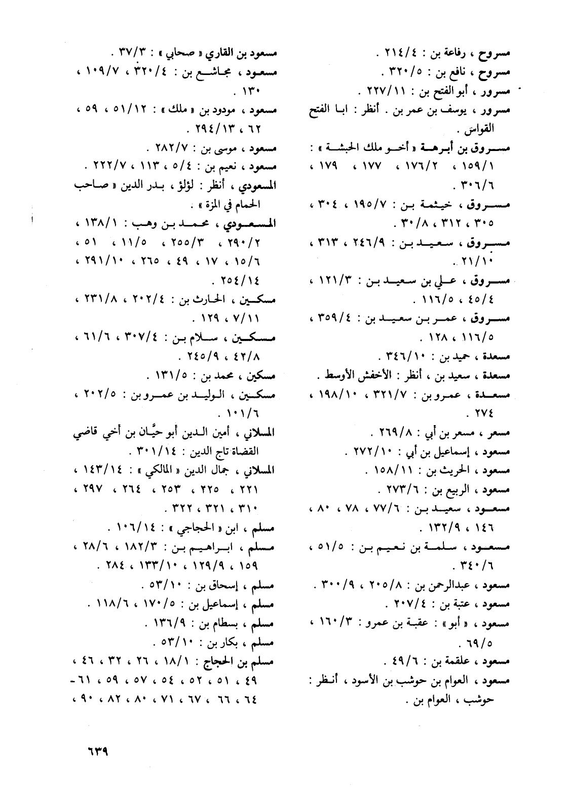 هشام بن حسان: ج 3/ 298. ج 4/ 109، 117. ج 5/ 66، 258، 259. ج 6/ 24، 119. ج 7/ 210. ج 8/ 5، 18، 221. ج 9/ 51، 136، 267، 274.