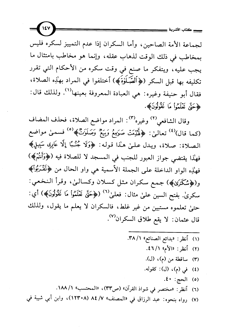 وقال الشافعي (¬2) وغيره (¬3): المراد مواضع الصلاة، فحذف المضاف (كما قال) (¬4) تعالى: {لَهُدِّمَتْ صَوَامِعُ وَبِيَعٌ وَصَلَوَاتٌ} (¬5) فسمى مواضع الصلاة: صلاة، ويدل على هذا قوله: {وَلَا جُنُبًا إِلَّا عَابِرِي سَبِيلٍ} فهذا يقتضي جواز العبور للجنب في المسجد لا للصلاة فيه ({وَأَنْتُمْ}) فهذِه الواو الداخلة على الجملة الاسمية هي واو الحال من {تَقْرَبُوا} و ({سُكَارَى}) جمع سكران مثل كسلان وكسالى، وقرأ النخعي: سكرى. بفتح السين على مثال: فعلى (¬6) ({حَتَّى تَعْلَمُوا مَا تَقُولُونَ}) أي: حتى تعلموه مستبين من غير غلط، فالسكران لا يعلم ما يقول، ولذلك قال عثمان: لا يقع طلاق السكران (¬7).