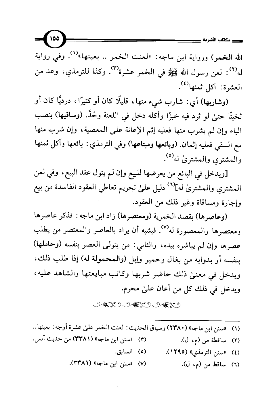 (¬1) "سنن ابن ماجه" (2380) وسياق الحديث: لعنت الخمر على عشرة أوجه: بعينها ..
