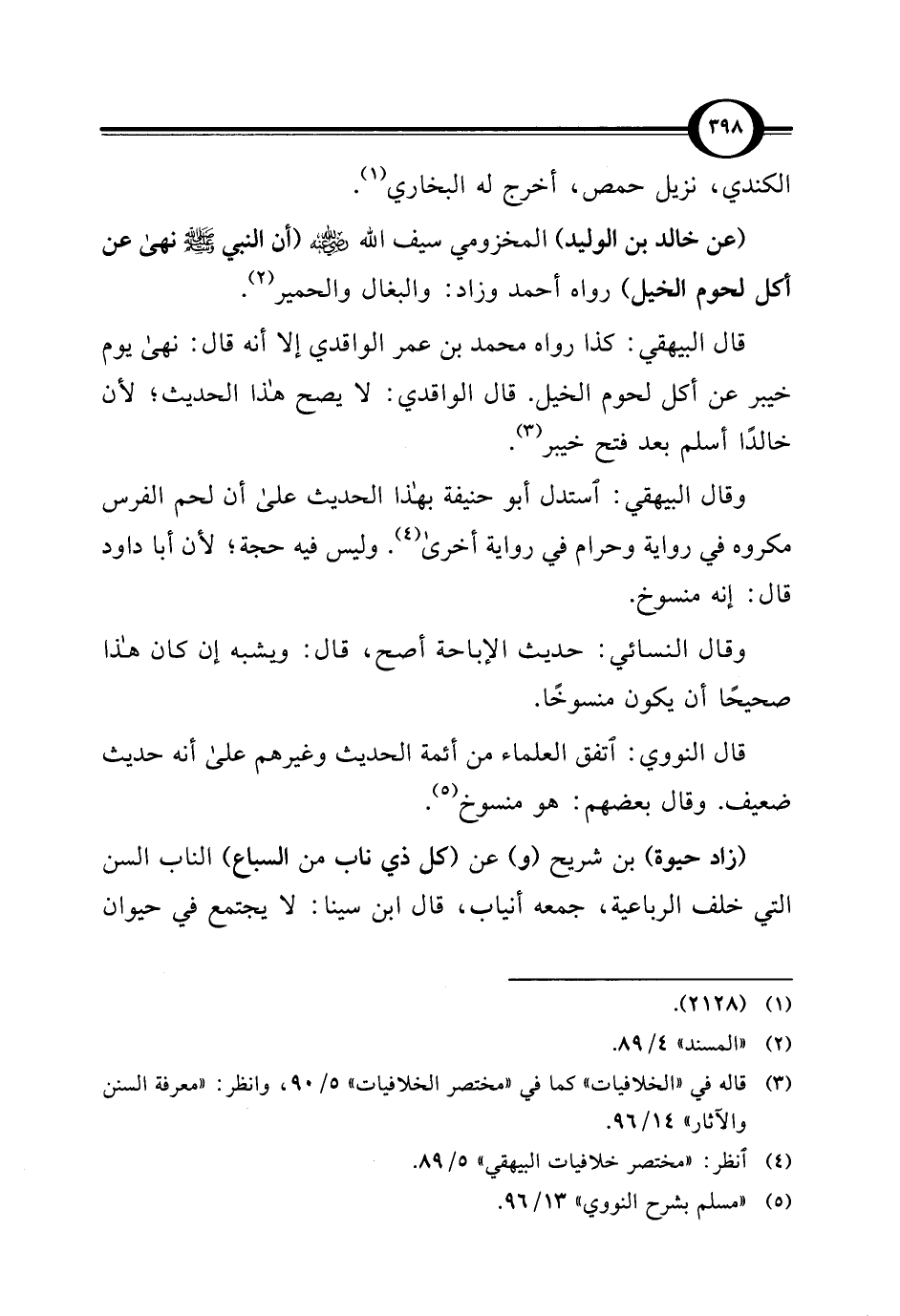 قال البيهقي: كذا رواه محمد بن عمر الواقدي إلا أنه قال: نهى يوم خيبر عن أكل لحوم الخيل. قال الواقدي: لا يصح هذا الحديث؛ لأن خالدًا أسلم بعد فتح خيبر (¬3).