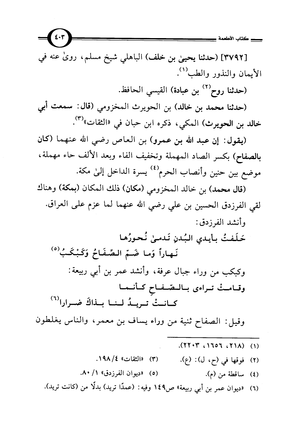 حَلَفتُ بأيدي البُدنِ تَدمى نُحورُها ... نَهارًا وَما ضَمّ الصِّفَاحُ وَكَبْكَبُ (¬5)