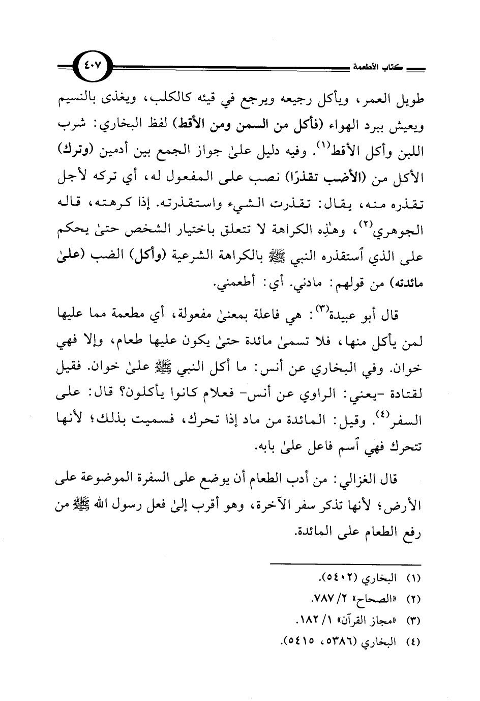 طويل العمر، ويأكل رجيعه ويرجع في قيئه كالكلب، ويغذى بالنسيم ويعيش ببرد الهواء (فأكل من السمن ومن الأقط) لفظ البخاري: شرب اللبن وأكل الأقط (¬1). وفيه دليل على جواز الجمع بين أدمين (وترك) الأكل من (الأضب تقذرًا) نصب على المفعول له، أي تركه لأجل تقذره منه، يقال: تقذرت الشيء واستقذرته. إذا كرهته، قاله الجوهري (¬2)، وهذِه الكراهة لا تتعلق باختيار الشخص حتى يحكم على الذي استقذره النبي -صلى اللَّه عليه وسلم- بالكراهة الشرعية (وأكل) الضب (على مائدته) من قولهم: ما دني. أي: أطعمني.