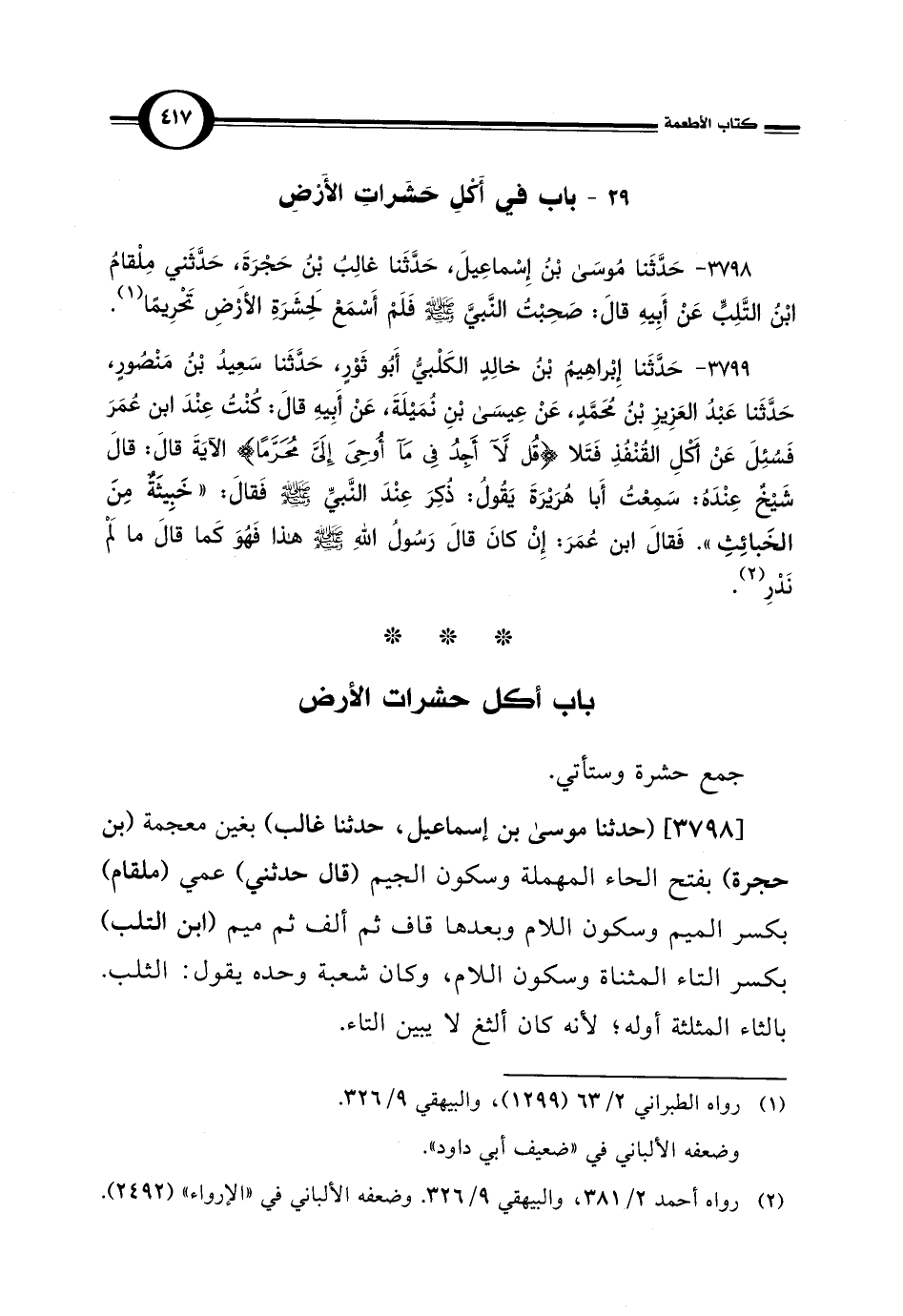 29 - باب فِي أَكْلِ حَشَراتِ الأَرْضِ