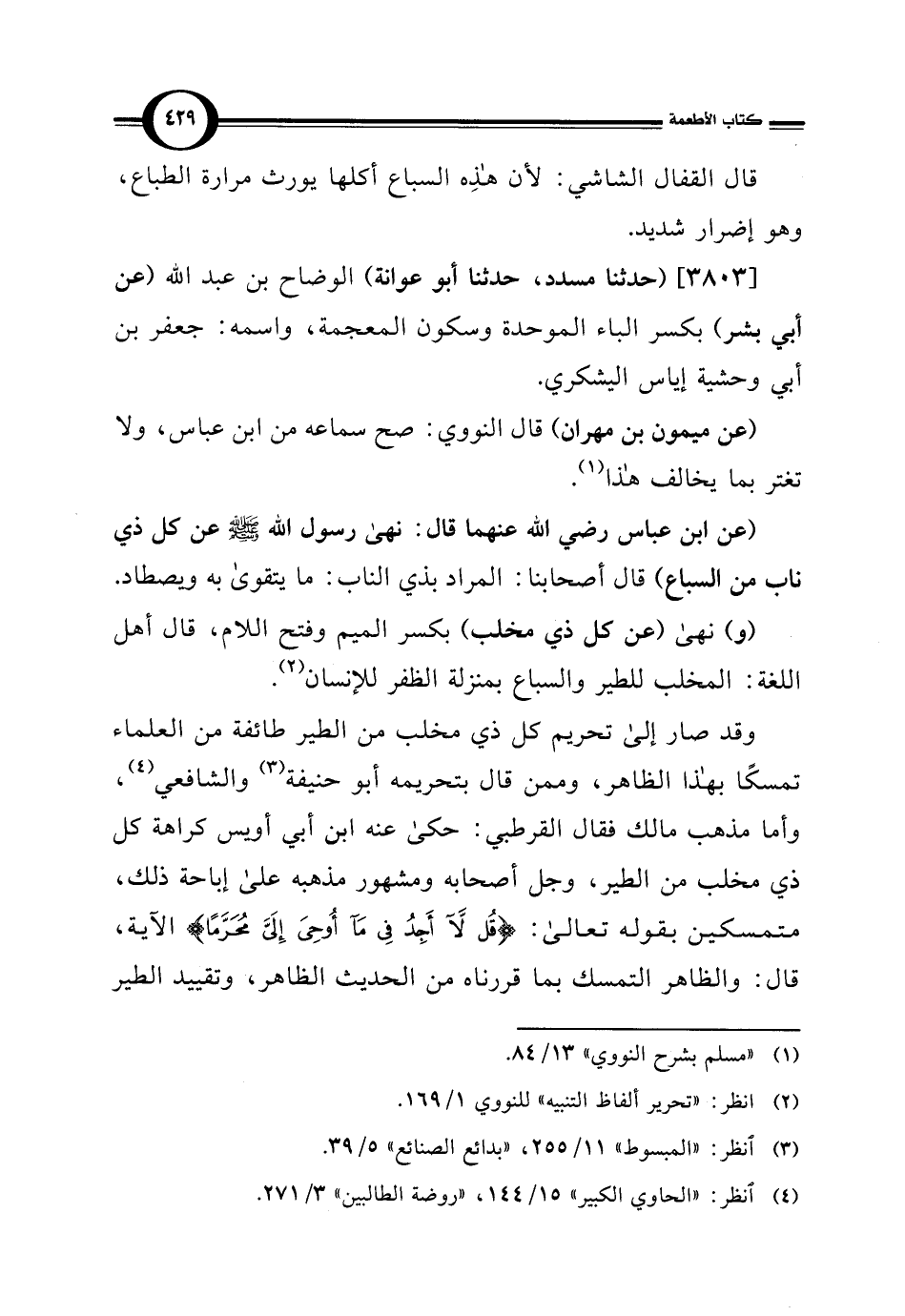 (عن ابن عباس رضي اللَّه عنهما قال: نهى رسول اللَّه -صلى اللَّه عليه وسلم- عن كل ذي ناب من السباع) قال أصحابنا: المراد بذي الناب: ما يتقوى به ويصطاد.