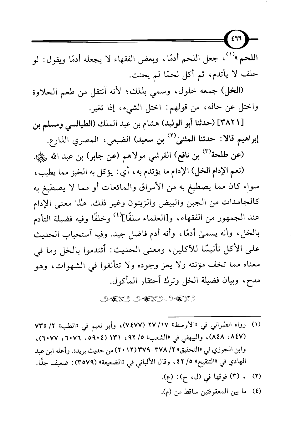 اللحم" (¬1)، جعل اللحم أدمًا، وبعض الفقهاء لا يجعله أدمًا ويقول: لو حلف لا يأتدم، ثم أكل لحمًا لم يحنث.