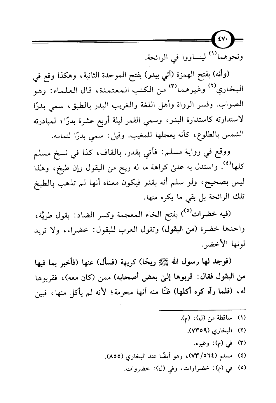 (وأنه) بفتح الهمزة (أتي ببدر) بفتح الموحدة الثانية، وهكذا وقع في البخاري (¬2) وغيرهما (¬3) من الكتب المعتمدة، قال العلماء: وهو الصواب. وفسر الرواة وأهل اللغة والغريب البدر بالطبق، سمي بدرًا لاستدارته كاستدارة البدر، وسمي القمر ليلة أربع عشرة بدرًا؛ لمبادرته الشمس بالطلوع، كأنه يعجلها للمغيب. وقيل: سمي بدرًا لتمامه.