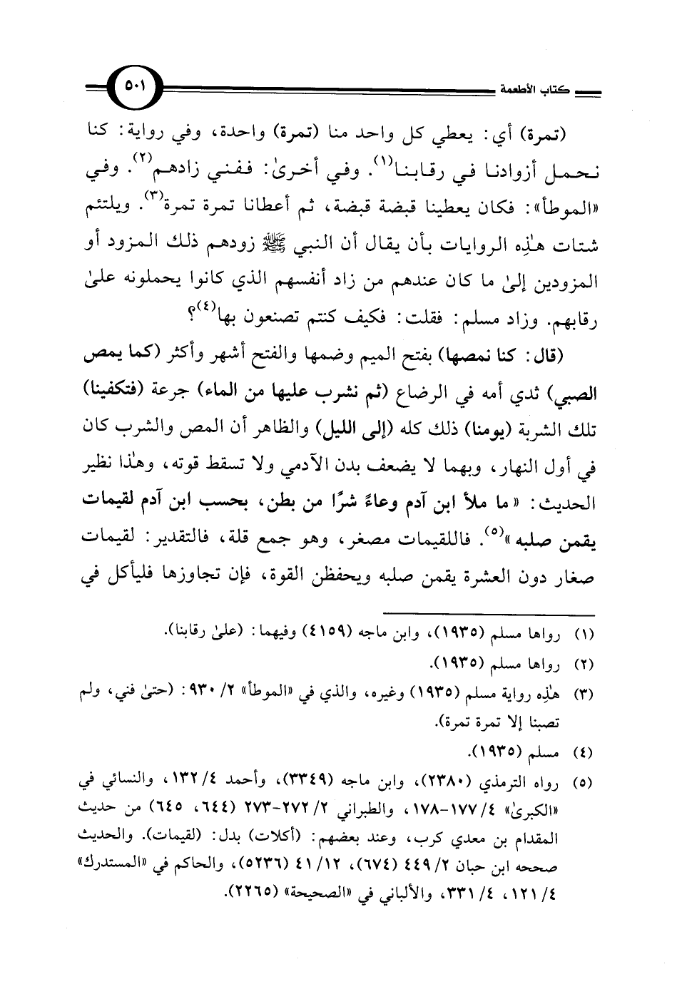 (¬5) رواه الترمذي (2380)، وابن ماجه (3349)، وأحمد 4/ 132، والنسائي في "الكبرى" 4/ 177 - 178، والطبراني 2/ 272 - 273 (644، 645) من حديث المقدام بن معدي كرب، وعند بعضهم: (أكلات) بدل: (لقيمات). والحديث صححه ابن حبان 2/ 449 (674)، 12/ 41 (5236)، والحاكم في "المستدرك" 4/ 121، 4/ 331، والألباني في "الصحيحة" (2265).
