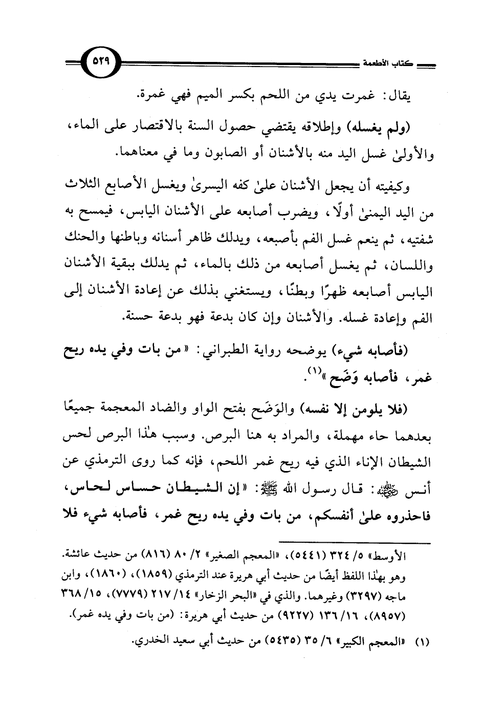 (فأصابه شيء) يوضحه رواية الطبراني: "من بات وفي يده ريح غمر، فأصابه وَضَح" (¬1).