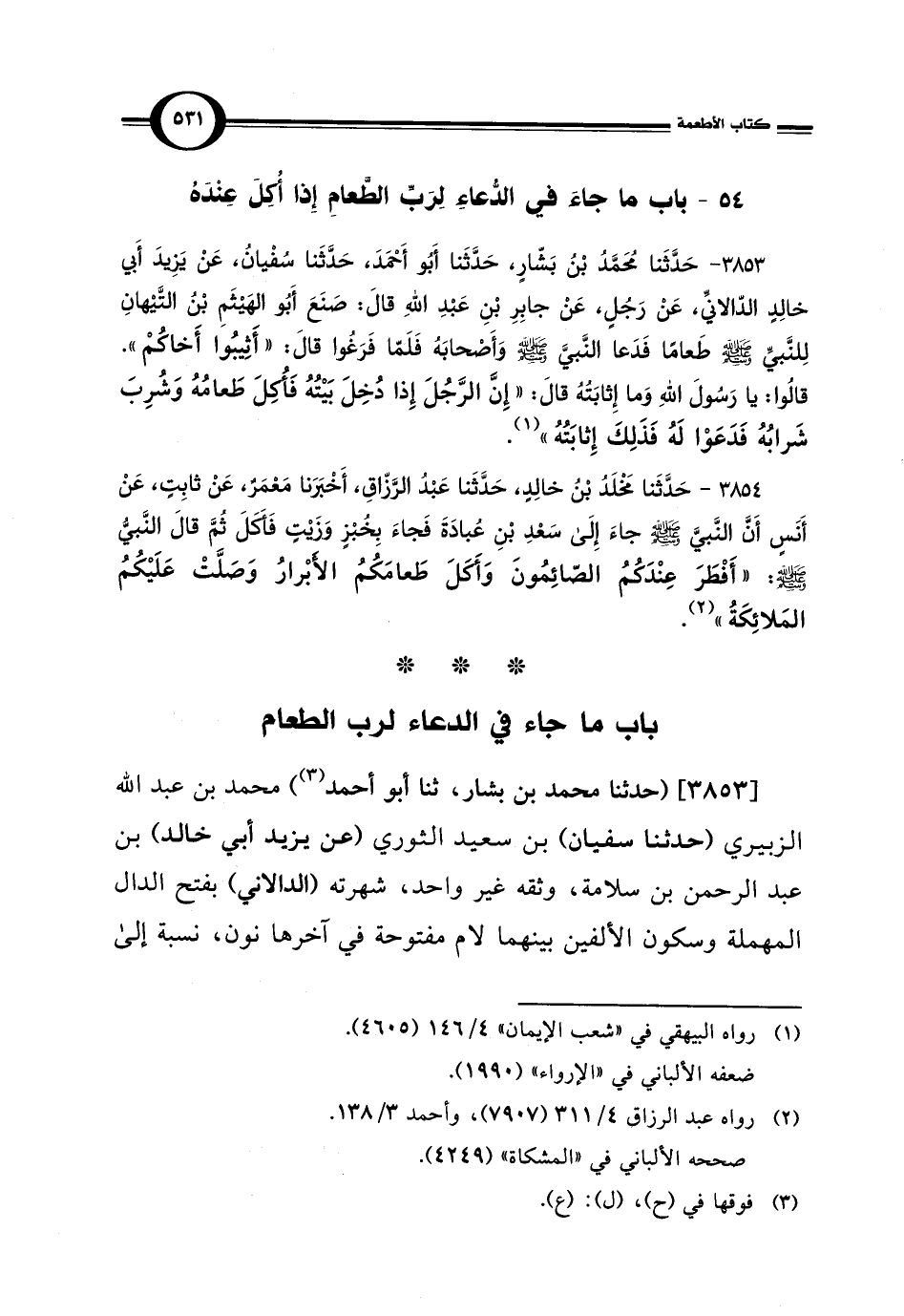 [3853] (حدثنا محمد بن بشار، ثنا أبو أحمد) (¬3) محمد بن عبد اللَّه الزبيري (حدثنا سفيان) بن سعيد الثوري (عن يزيد أبي خالد) بن عبد الرحمن بن سلامة، وثقه غير واحد، شهرته (الدالاني) بفتح الدال المهملة وسكون الألفين بينهما لام مفتوحة في آخرها نون، نسبة إلى
