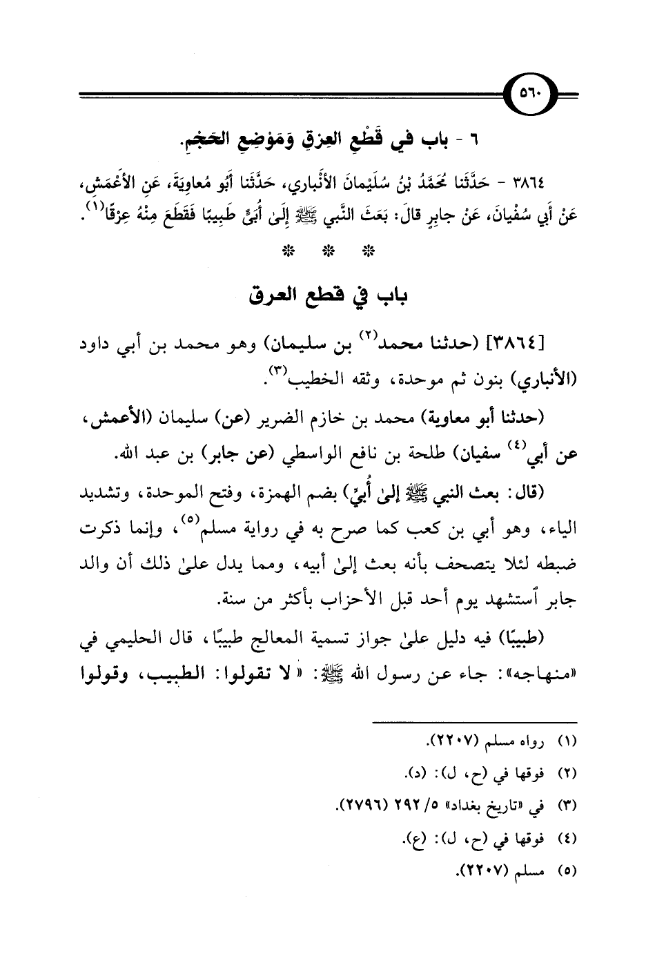 [3864] (حدثنا محمد (¬2) بن سليمان) وهو محمد بن أبي داود (الأنباري) بنون ثم موحدة، وثقه الخطيب (¬3).