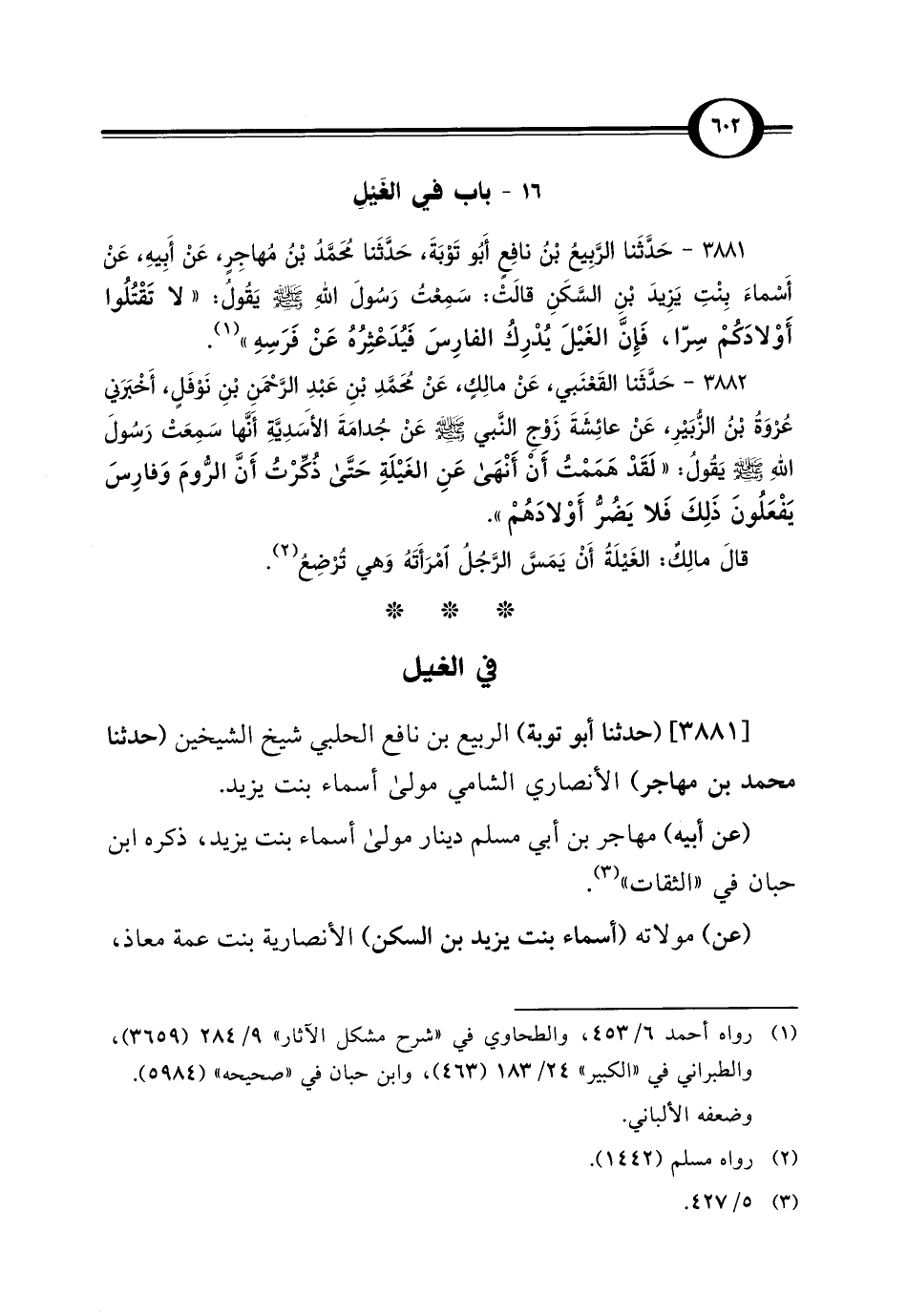 [3881] (حدثنا أبو توبة) الربيع بن نافع الحلبي شيخ الشيخين (حدثنا محمد بن مهاجر) الأنصاري الشامي مولى أسماء بنت يزيد.