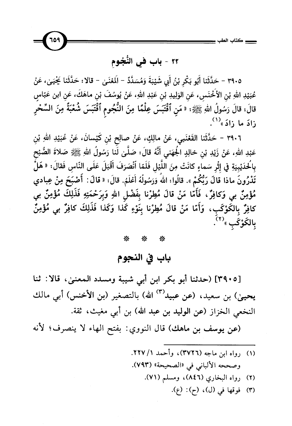[3905] (حدثنا أبو بكر ابن أبي شيبة ومسدد المعنى، قالا: ثنا يحيى) بن سعيد, (عن عبيد (¬3) اللَّه) بالتصغير (بن الأخنس) أبي مالك النخعي الخزاز (عن الوليد بن عبد اللَّه) بن أبي مغيث، ثقة.