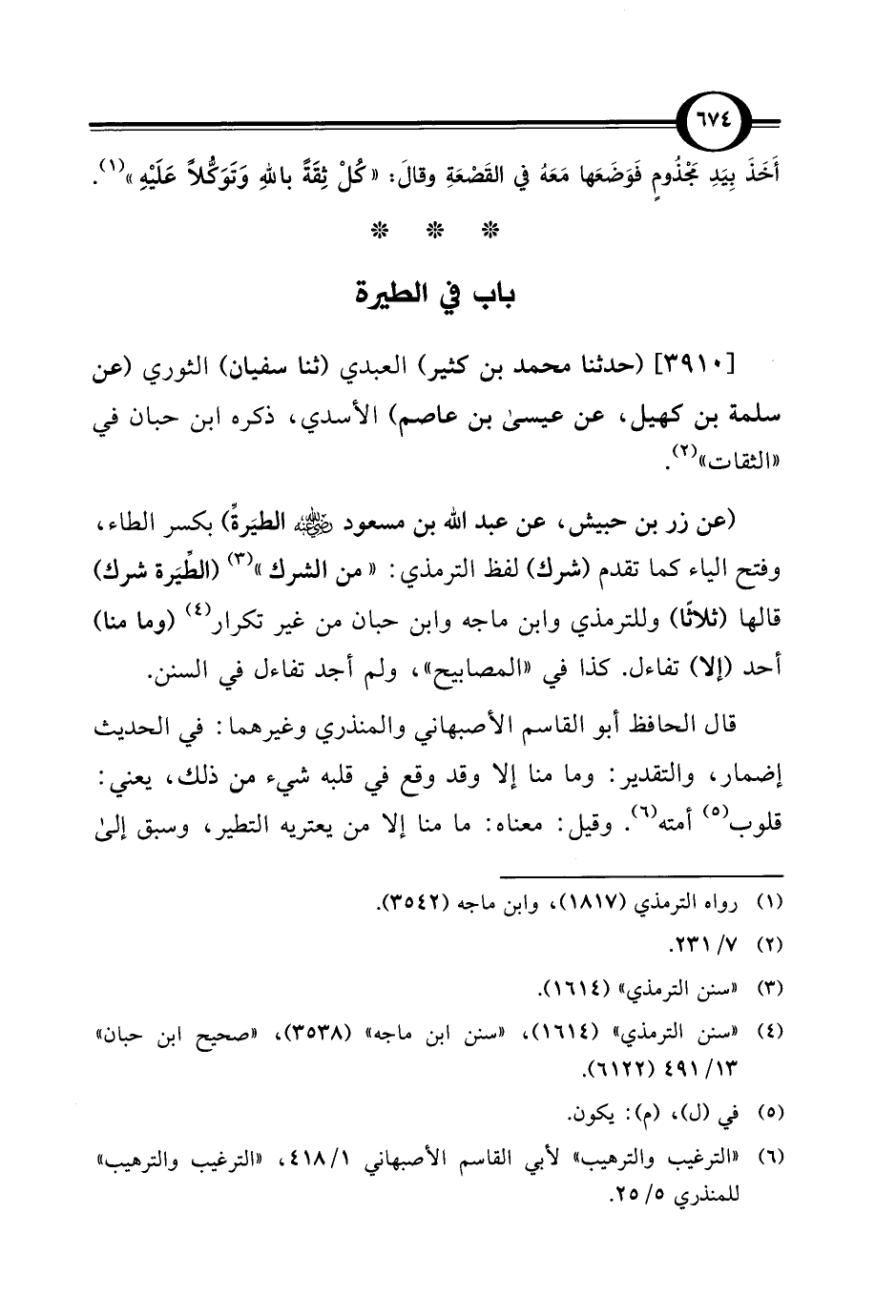 (¬6) "الترغيب والترهيب" لأبي القاسم الأصبهاني 1/ 418، "الترغيب والترهيب" للمنذري 5/ 25.