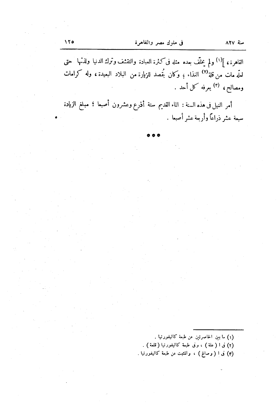 أمر النيل فى هذه السنة: الماء القديم ستة أذرع وعشرون أصبعا؛ مبلغ الزيادة سبعة عشر ذراعا وأربعة عشر أصبعا.