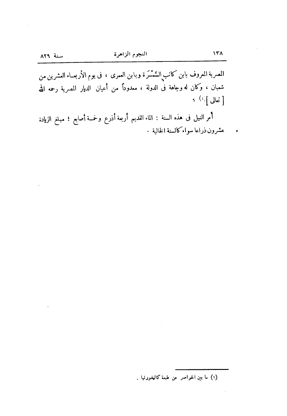 المصرية المعروف بابن كاتب السّمسرة وبابن العمرى، فى يوم الأربعاء العشرين من شعبان، وكان له وجاهة فى الدولة، معدودا من أعيان الديار المصرية رحمه الله [تعالى] «1» :