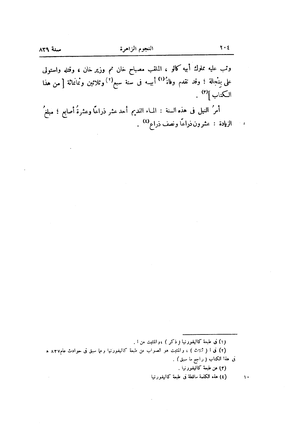 أمر النيل فى هذه السنة: الماء القديم أحد عشر ذراعا وعشرة أصابع؛ مبلغ الزيادة: عشرون ذراعا ونصف ذراع «4» .
