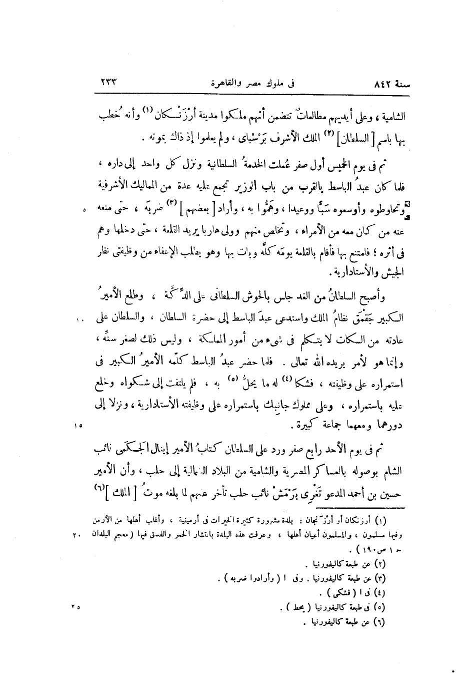 ثم فى يوم الأحد رابع صفر ورد على السلطان كتاب الأمير إينال الجكمى نائب الشام بوصوله بالعساكر المصرية والشامية من البلاد النمالية إلى حلب، وأن الأمير حسين بن أحمد المدعو تغرى برمش نائب حلب تأخر عنهم لما بلغه موت [الملك] «6»