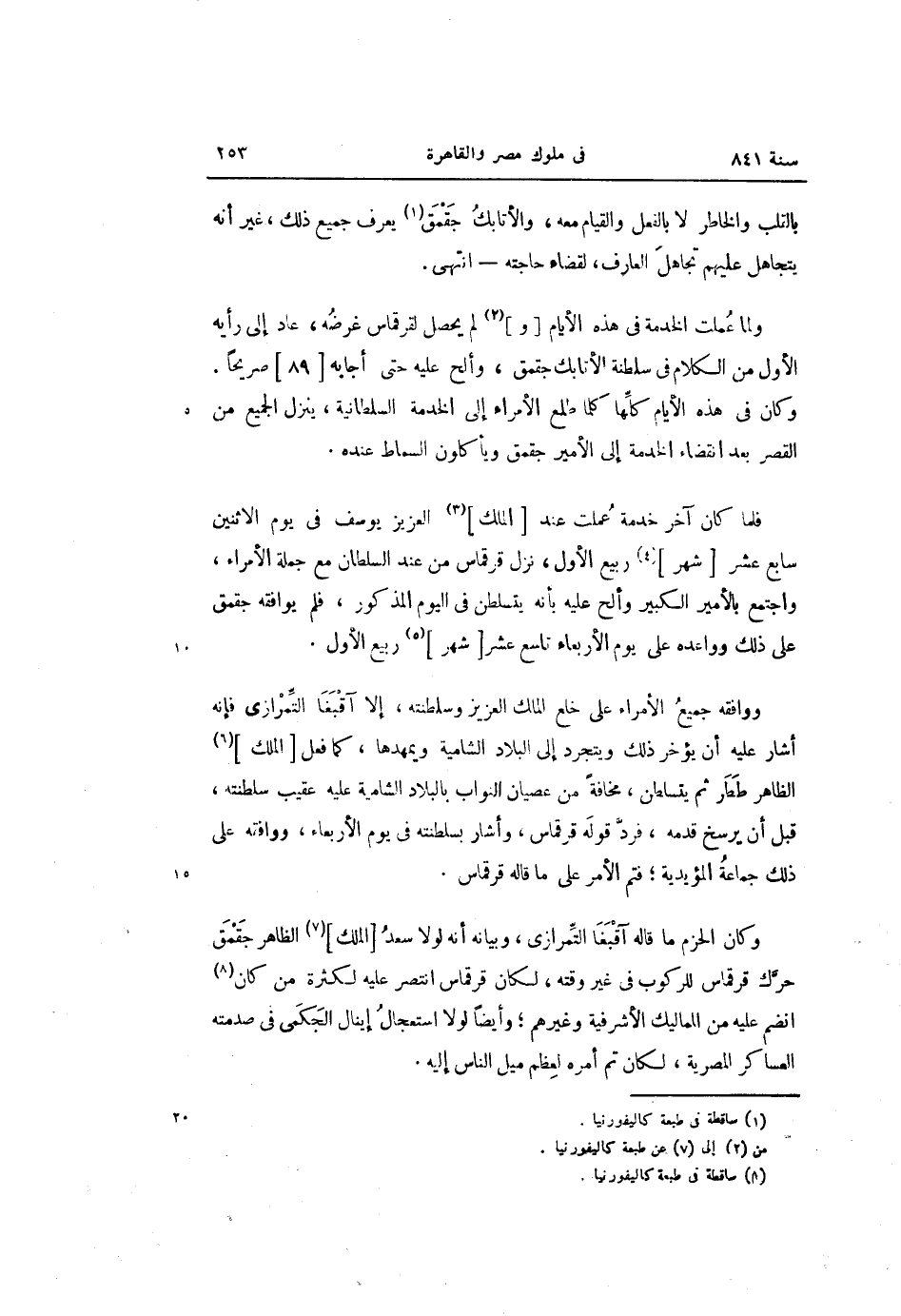 وكان الحزم ما قاله آقبغا التّمرازى، وبيانه أنه لولا سعد [الملك] «7» الظاهر جقمق حرّك قرقماس للركوب فى غير وقته، لكان قرقماس انتصر عليه لكثرة من كان «8» انضم عليه من المماليك الأشرفية وغيرهم؛ وأيضا لولا استعجال إينال الجكمى فى صدمته العساكر المصرية، لكان تم أمره لعظم ميل الناس إليه.