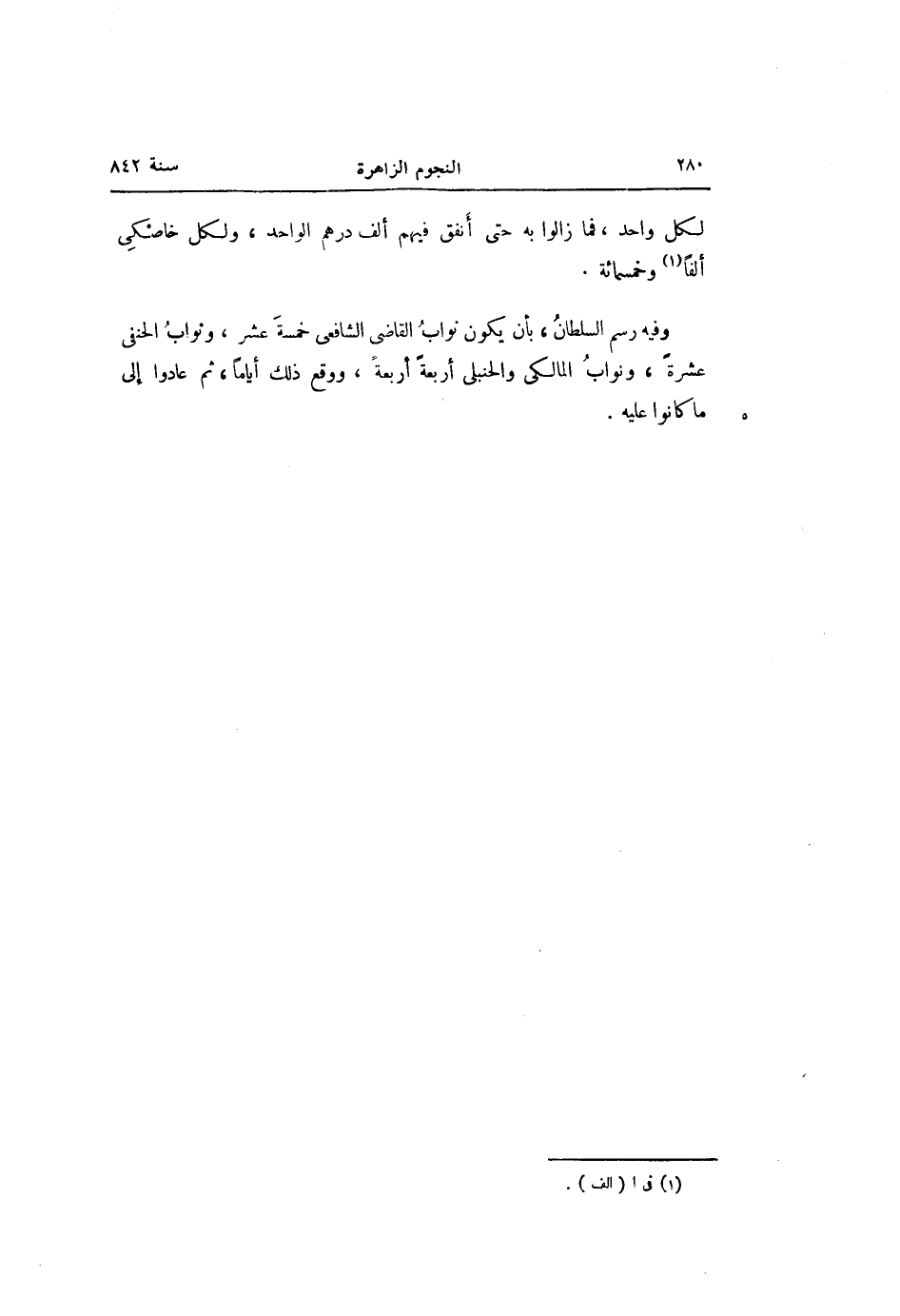 وفيه رسم السلطان، بأن يكون نواب القاضى الشافعى خمسة عشر، وثواب الحنفى عشرة، ونواب المالكى والحنبلى أربعة أربعة، ووقع ذلك أياما، ثم عادوا إلى ما كانوا عليه.