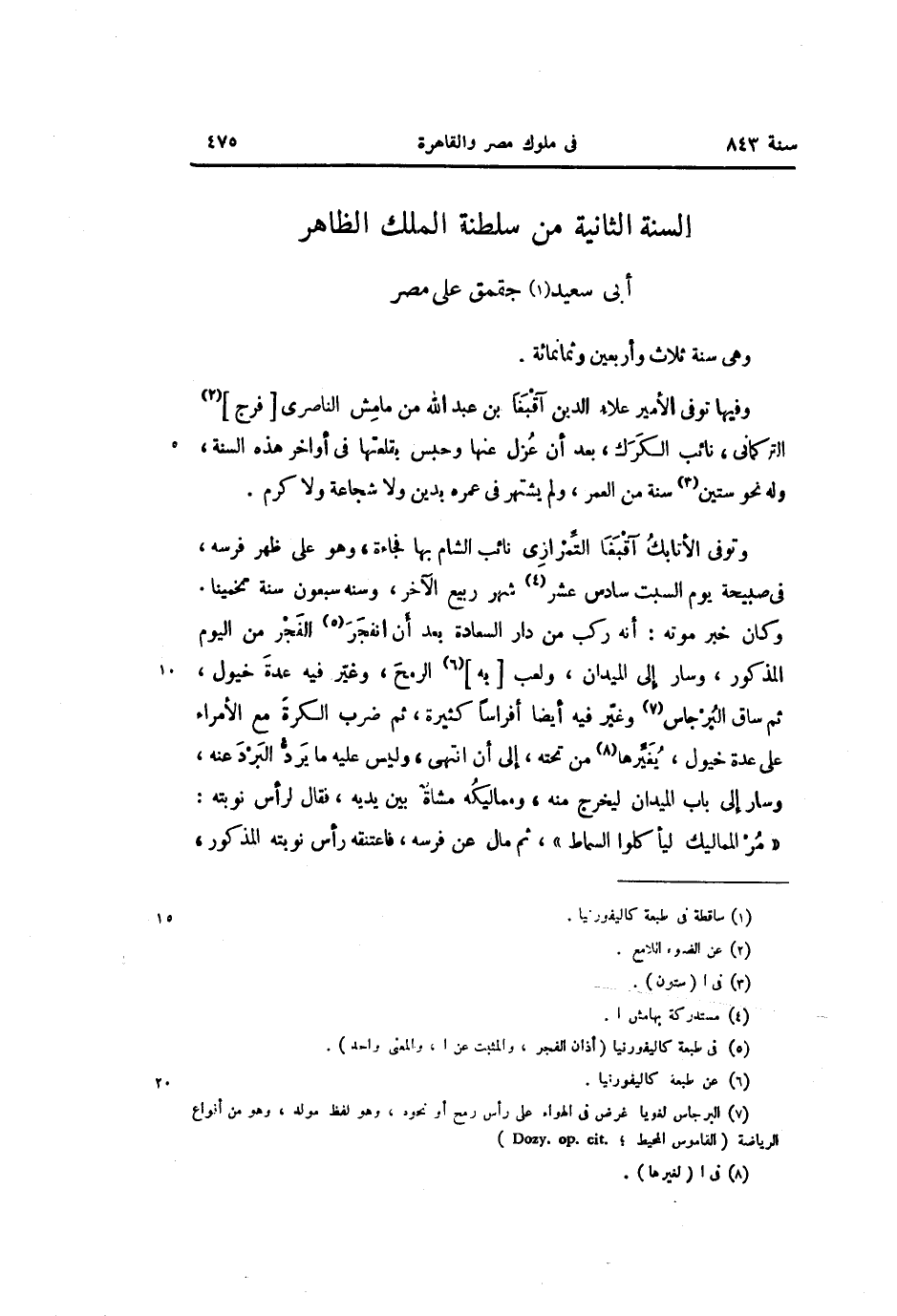 السنة الثانية من سلطنة الملك الظاهر أبى سعيد «1» جقمق على مصر وهى سنة ثلاث وأربعين وثمانمائة.