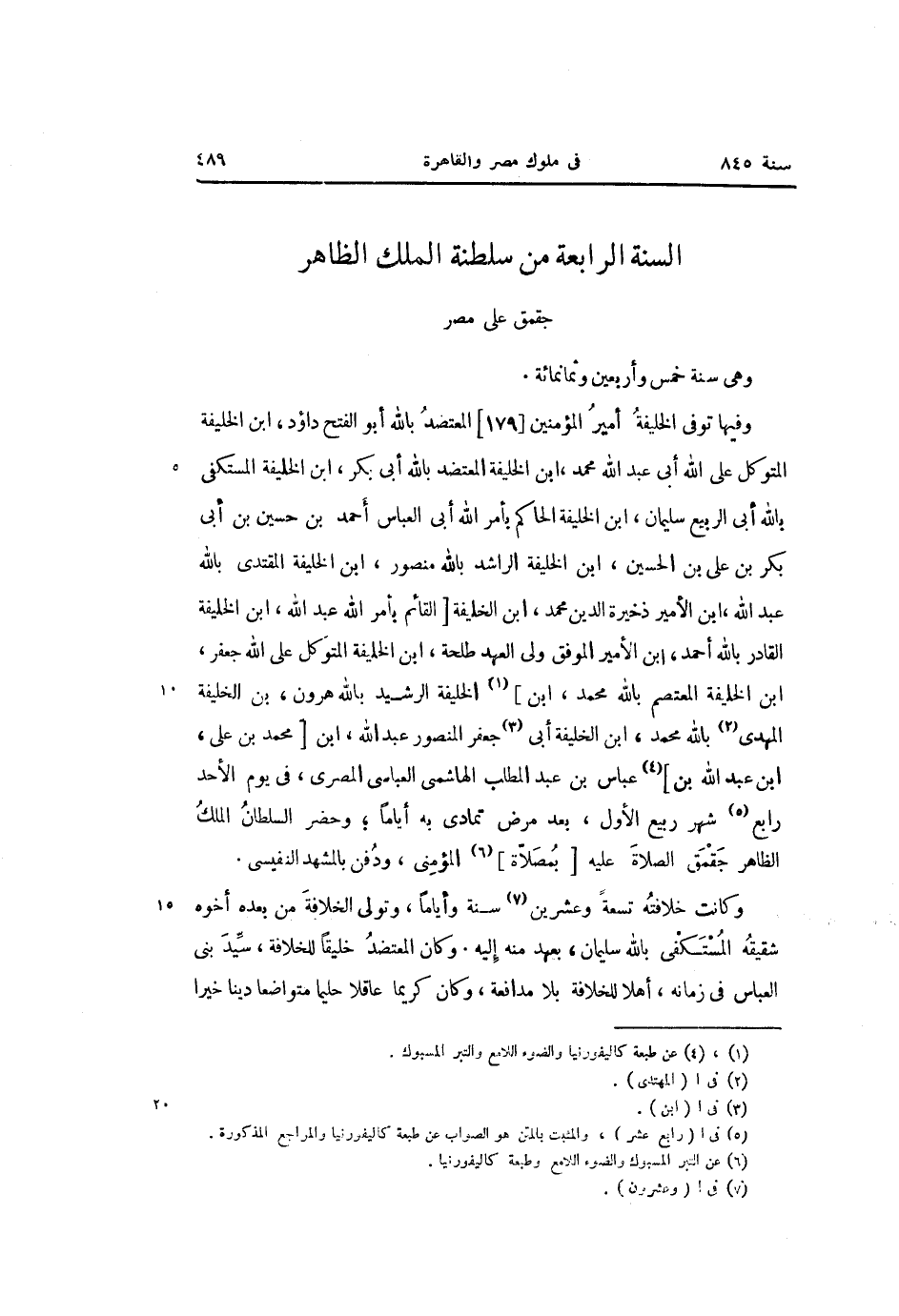 السنة الرابعة من سلطنة الملك الظاهر جقمق على مصر وهى سنة خمس وأربعين وثمانمائة.