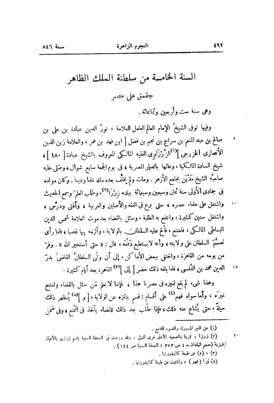 السنة الخامسة من سلطنة الملك الظاهر جقمق على مصر وهى سنة ست وأربعين وثمانمائة.