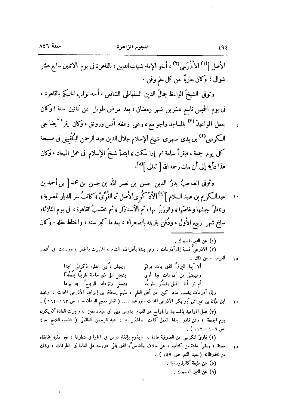 الأصل] «1» الأذرعى «2» ، أخو الإمام شهاب الدين، بالقاهرة فى يوم الاثنين سابع عشر شوال؛ وكان عاريا من كل علم وفن.