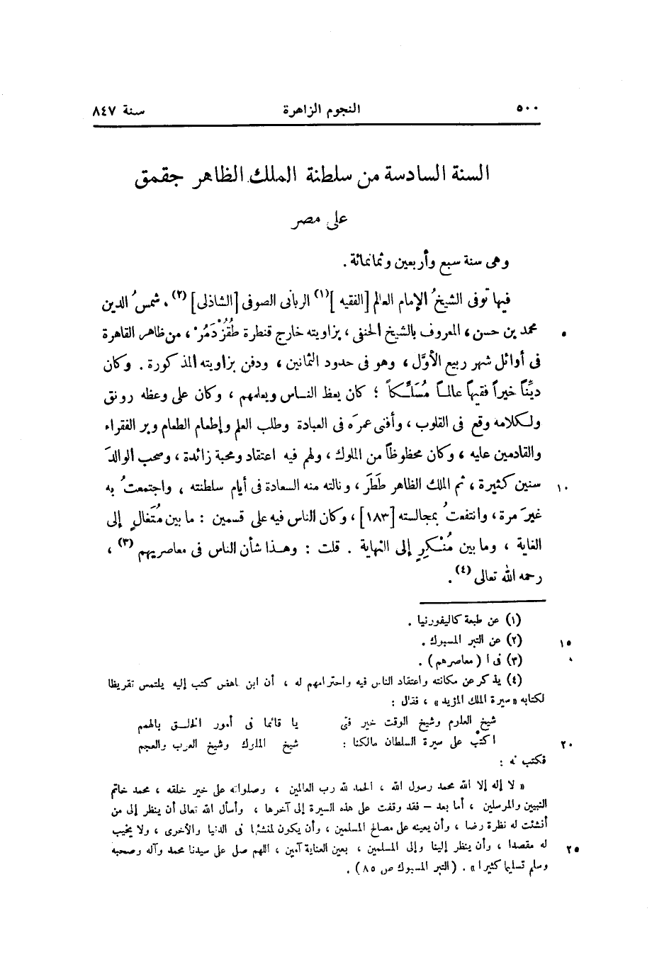 السنة السادسة من سلطنة الملك الظاهر جقمق على مصر وهى سنة سبع وأربعين وثمانمائة.