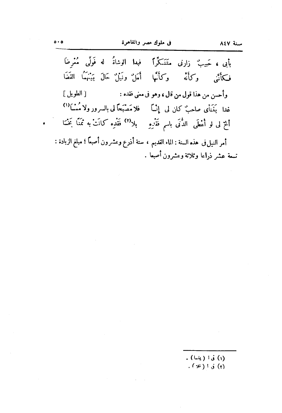 أمر النيل فى هذه السنة: الماء القديم، ستة أذرع وعشرون أصبعا؛ مبلغ الزيادة: