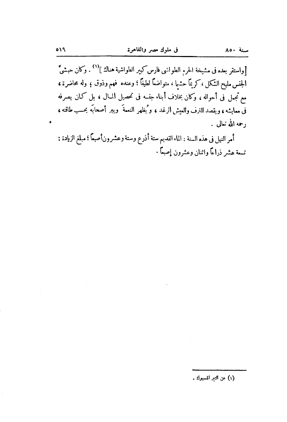 أمر النيل فى هذه السنة: الماء القديم ستة أذرع وستة وعشرون أصبعا؛ مبلغ الزيادة: