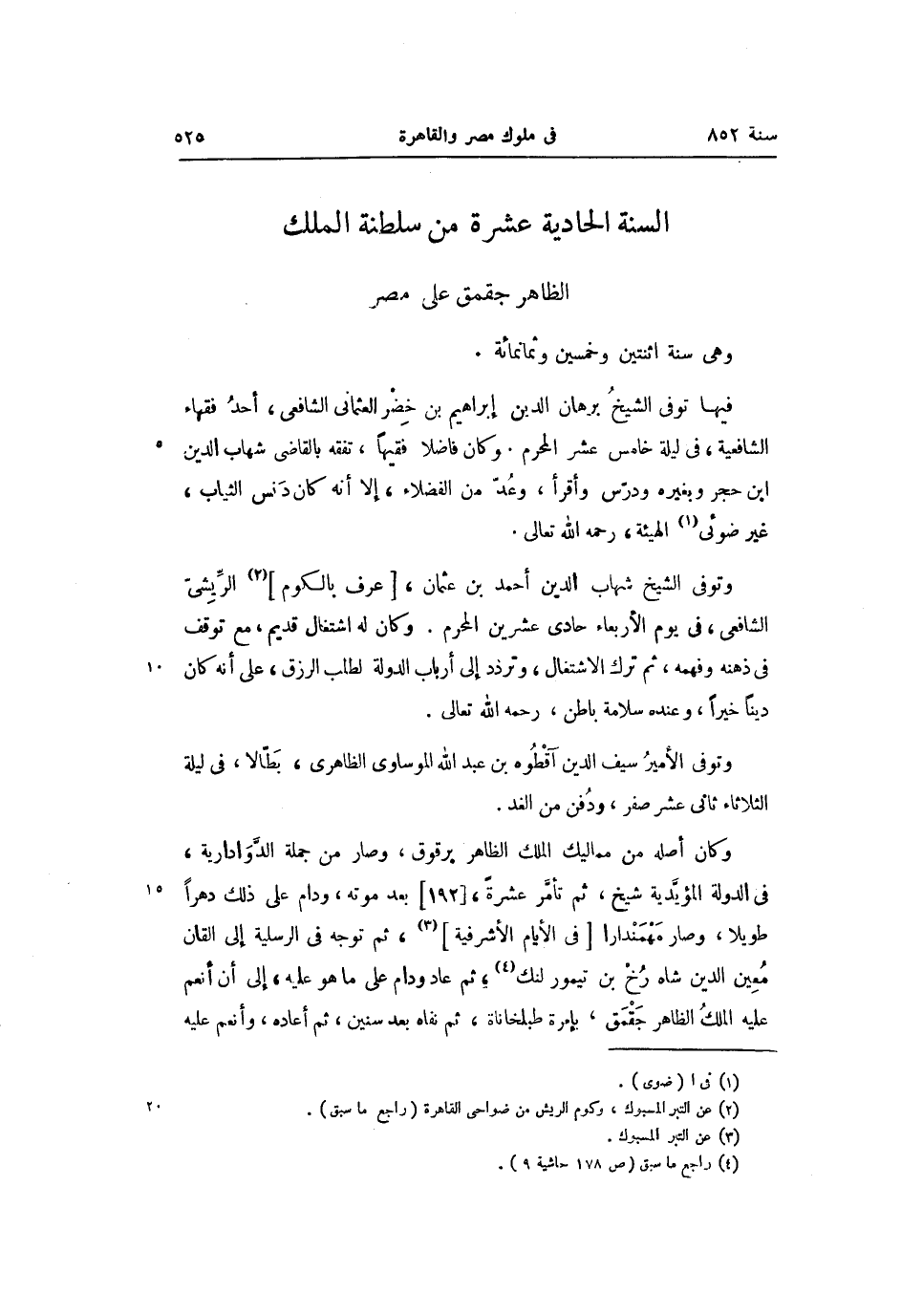 السنة الحادية عشرة من سلطنة الملك الظاهر جقمق على مصر وهى سنة اثنتين وخمسين وثمانمائة.