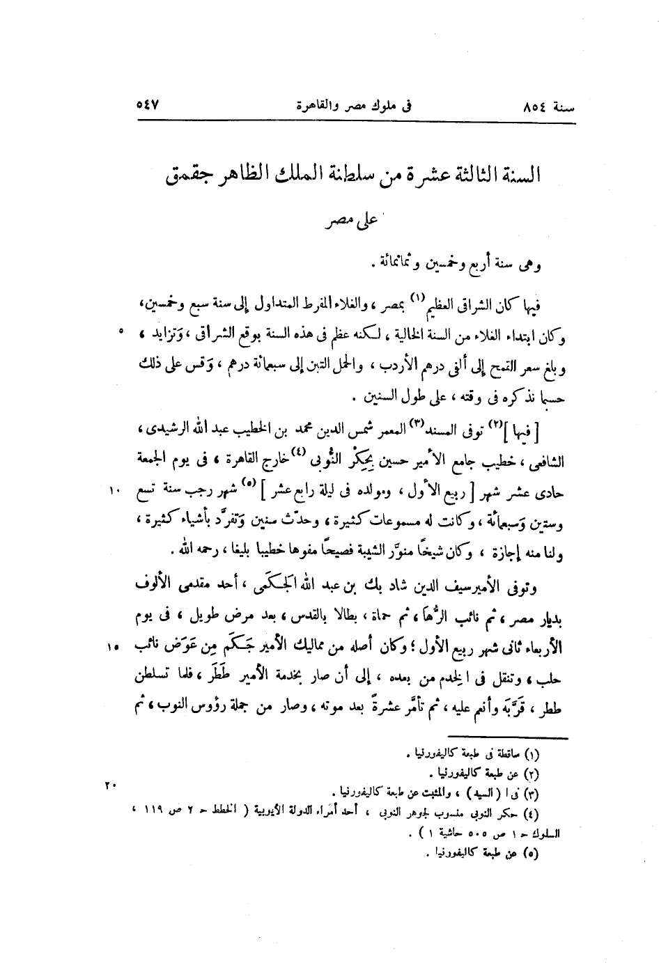 السنة الثالثة عشرة من سلطنة الملك الظاهر جقمق على مصر وهى سنة أربع وخمسين وثمانمائة.