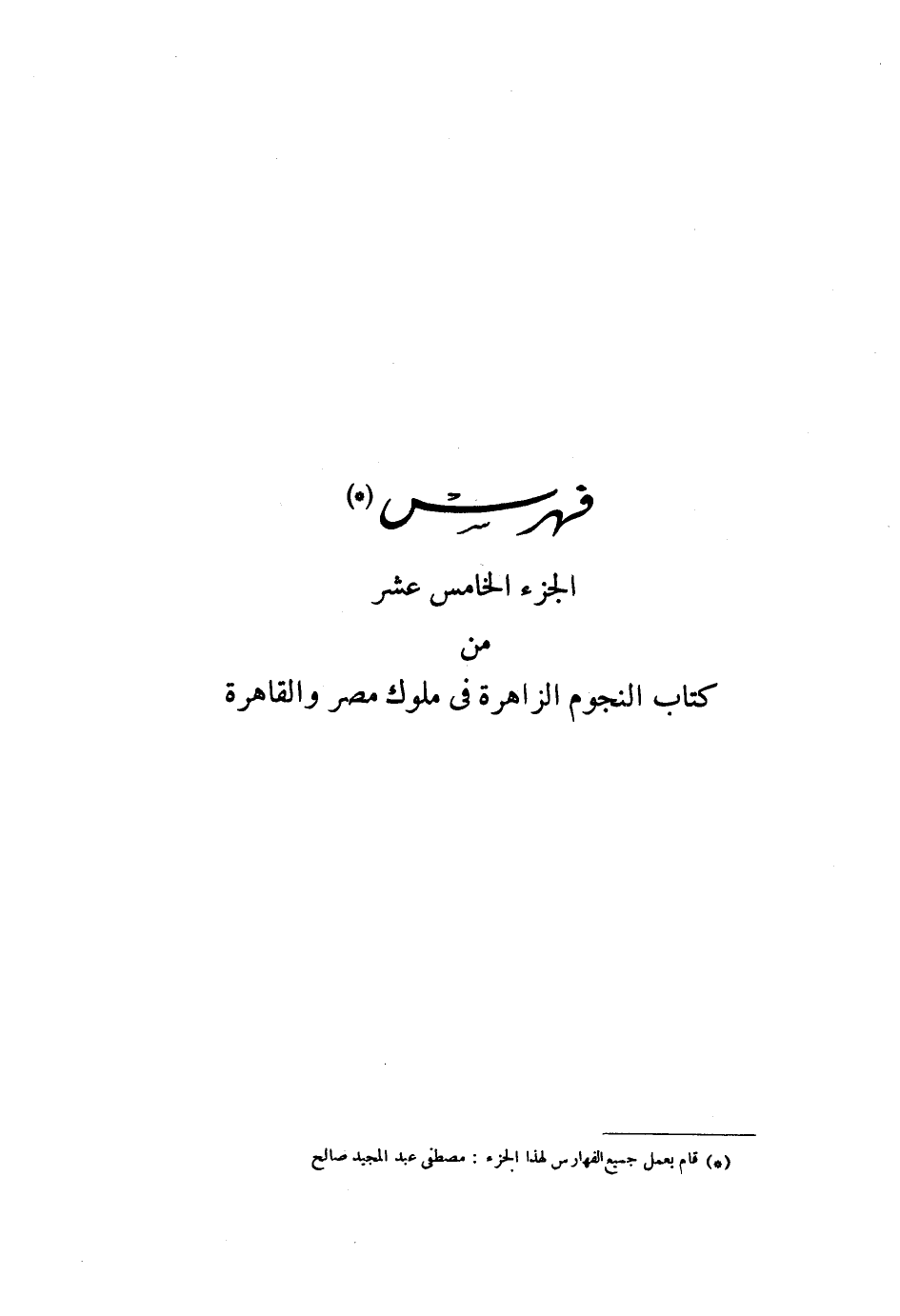 الجزء الخامس عشر من كتاب النجوم الزاهرة فى ملوك مصر والقاهرة