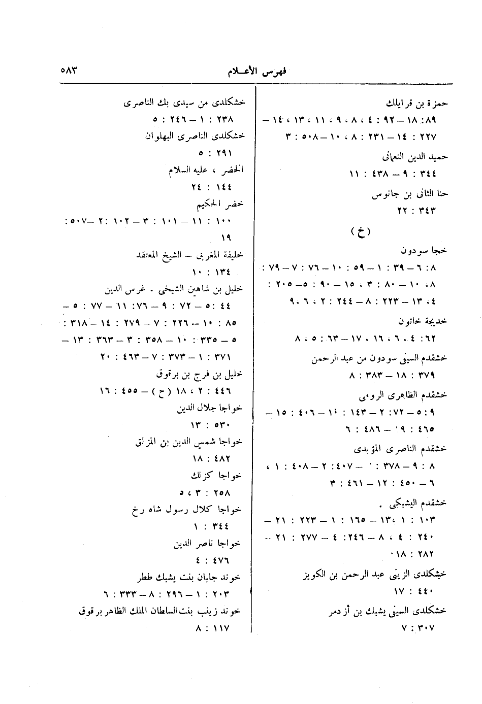 خشقدم الظاهرى الرومى 9: 5- 72: 2- 143: 10- 406: 15- 465: 19- 486: 6