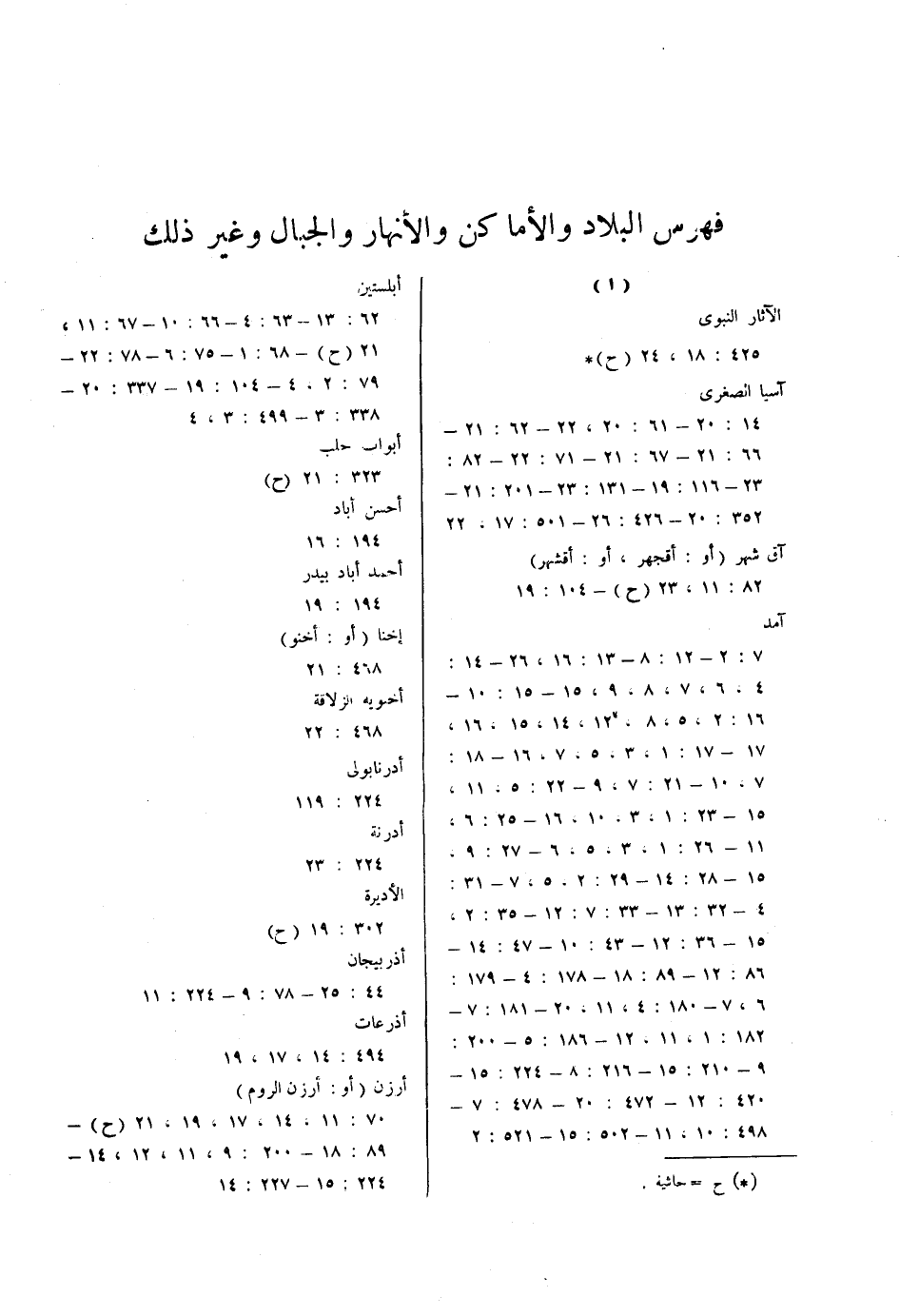 فهرس البلاد والأماكن والأنهار والجبال وغير ذلك